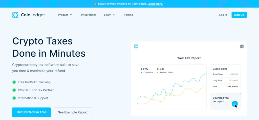 Coinledger simplifies crypto-tax reporting. Follow seamlessly transaction exchanges and wallet trackings, create detailful tax reports complying with different jurisdictions.