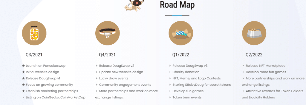 Baby Doug The first mission is to have FUN and bring happiness to all crypto lovers and dog lovers around the world! second mission is to support abandoned and homeless Pugs and to ensure they have a loving home.