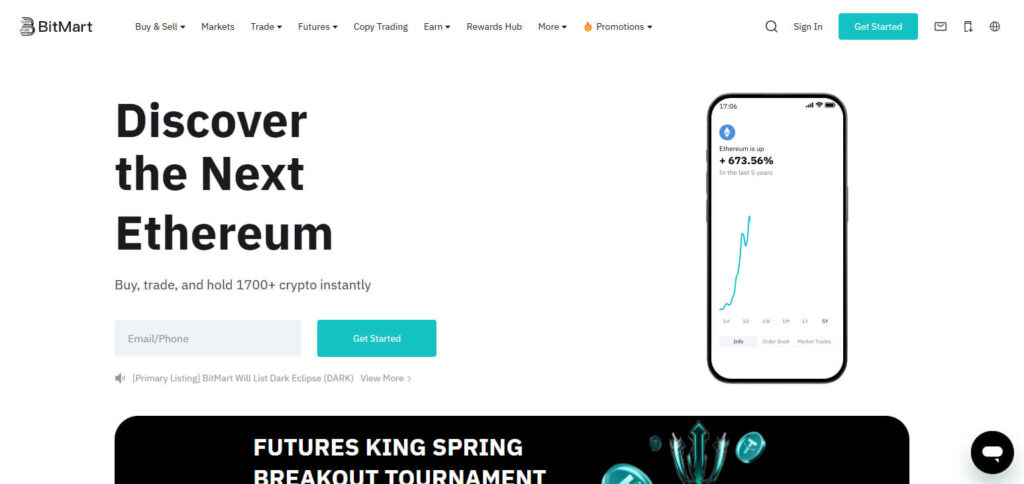 Bitmart serves as a solid Bybit alternative for users in Asia, particularly those looking to find new cryptocurrencies.
