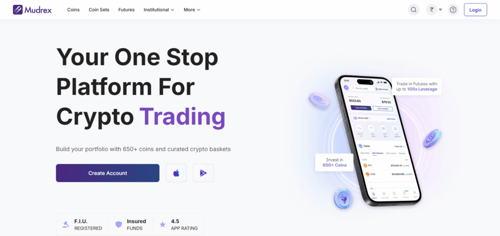 Special FeatureOffers Coin Sets (thematic crypto baskets), SIP investing, and Futures trading