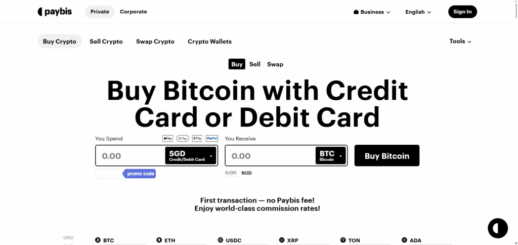 | Paybis | Simple fiat-to-crypto gateway with multiple payment methods |