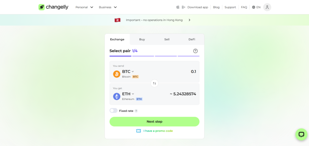 Changelly stands out as one of the best alternatives to CoinSwitch Kuber because it allows quick and easy crypto-to-crypto exchange without account registration.
