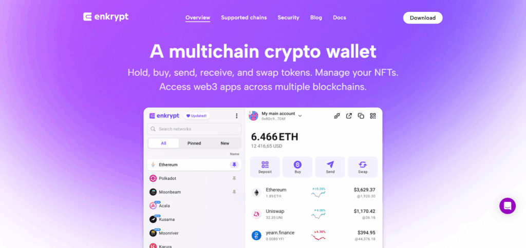 Among the best cross-chain wallets with Ledger support, Enkrypt Wallet focuses on Polkadot and other EVM-compatible chains. Its seamless integration with the Polkadot ecosystem is a unique advantage for users as they can manage parachain assets and Ethereum tokens in one secure interface.