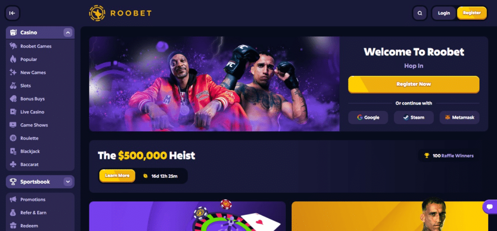 Easy-to-navigate tabs and 24/7 customer support make Roobet one of the top destinations for Australian crypto gamblers.