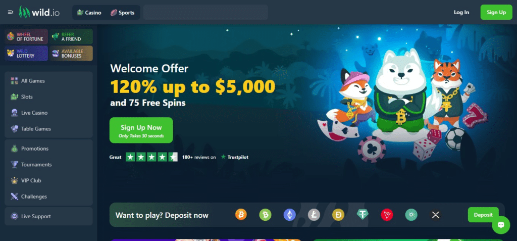 | Wild.io | Cryptocurrency focus, slots, and live games |