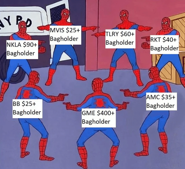 Bagholders unite: bonding over the shared experience of watching investments turn into bags. Bagholder life: hoping for a pump while drowning in a sea of red.”