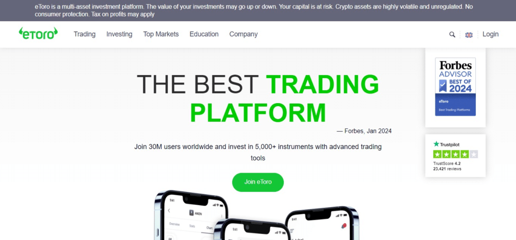 | eToro | Advanced security | Higher fees for CFDs | User-friendly | Extensive | High | 24/7 support | Fully regulated |