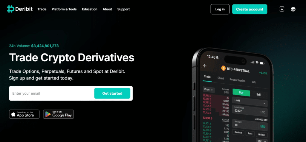 Deribit is a crypto-trading platform that specializes in options and futures on Bitcoin and Ethereum. Deribit stands out because of its deep liquidity pools which provide traders with the best tools needed for executing strategies effectively