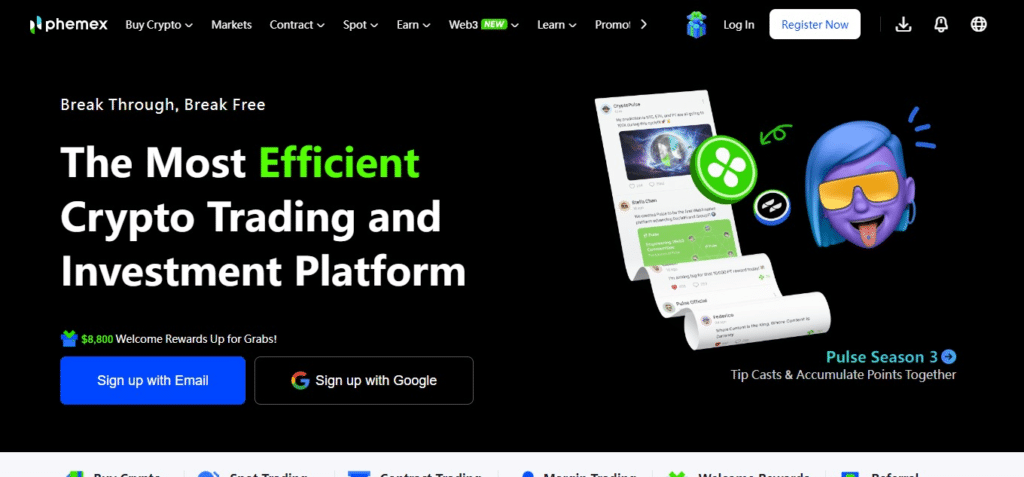 Known for its fast and secure trading experience, Phemex is a top-tier crypto trading platform. Phemex serves both retail and institutional traders with features like spot trading, futures trading, and zero-fee spot trading.