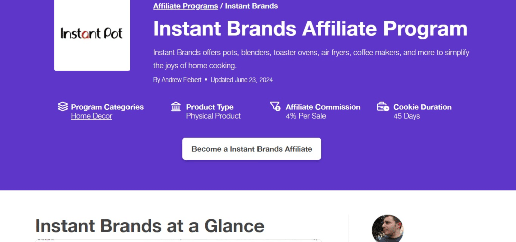 Best Home Decor Affiliate Program by Instant Brands The Instant Brands affiliate marketing opportunity is all about high-quality kitchen and home-related appliances.
