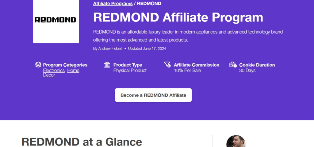 Home & Appliances Application by the REDMOND affiliate program. Competitive commissions on a large selection of smart home products.