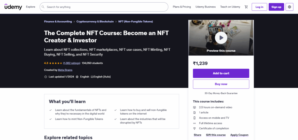 | The Complete NFT Course | Comprehensive guide from NFT creation to selling strategies. |