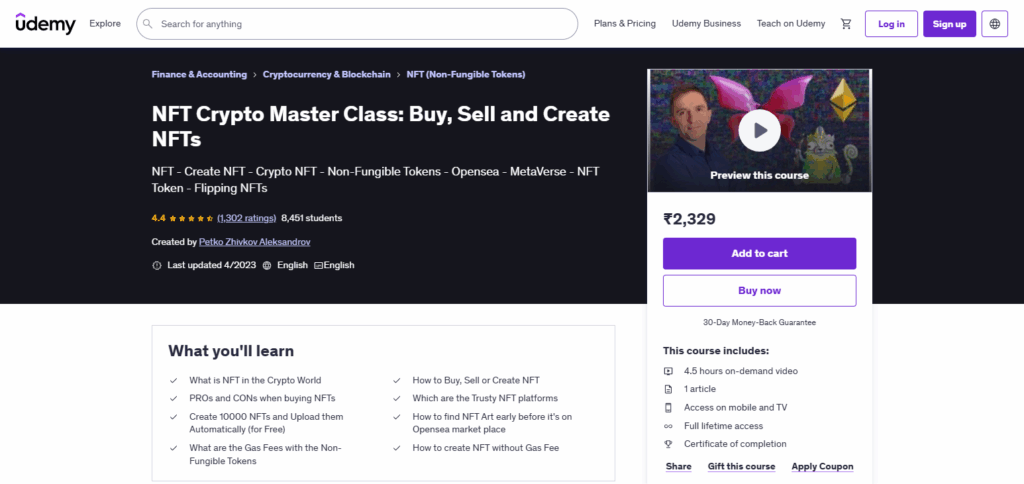 NFT Crypto Master Class offers one of the most comprehensive courses at the intersection of blockchain technology and NFTs, as it meticulously covers crypto fundamentals alongside proven strategies for investing in NFTs. Its distinct focus on critical examination of markets, their dynamics,