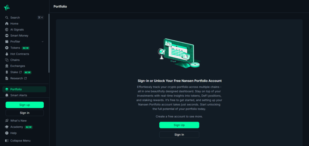 Nansen PortfolioAdvanced on-chain analytics with smart money tracking.