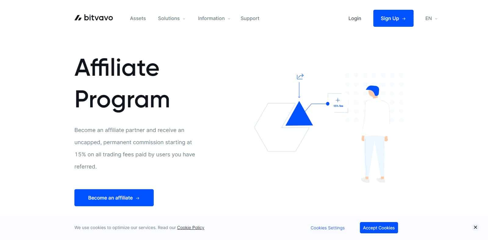 Discover the origins, mission and vision of Bitvavo: One of Europe’s leading digital asset exchanges. Welcome to Bitvavo Affiliate Program. As an affiliate, you can earn 15% permanent commission on the trading fee of every transaction executed by a user who is invited by you.