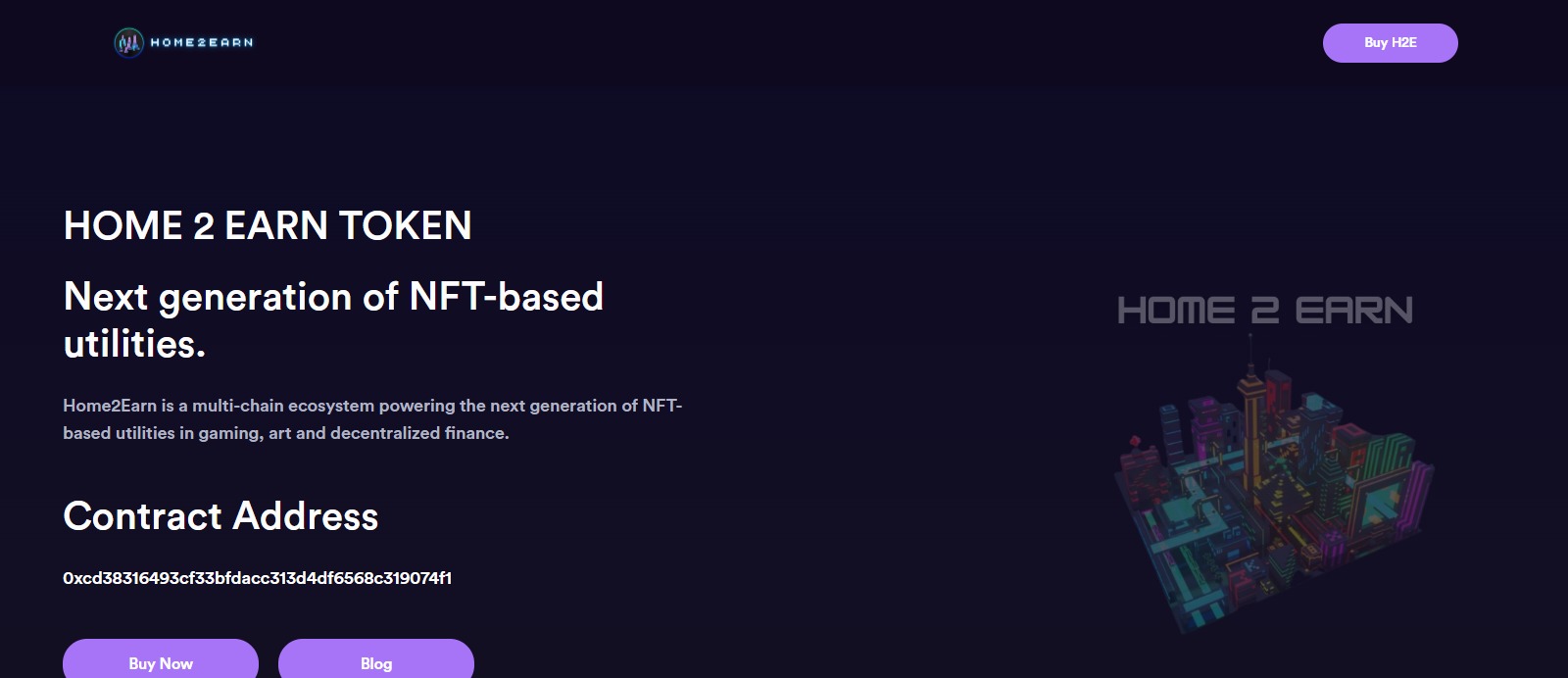 Home2Earn Coin is a multi-chain ecosystem powering the next generation of NFT-based utilities in gaming, art and decentralized finance.