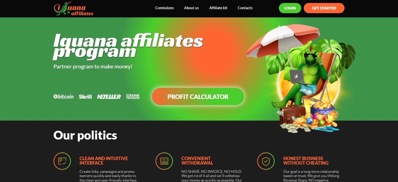 Iguana Affiliate Program – is a free Affiliates program established by professionals which gives you the ability to earn money easily by referring players to their gambling projects. Bring gamers to their casino and betting brands and get a lot of money!