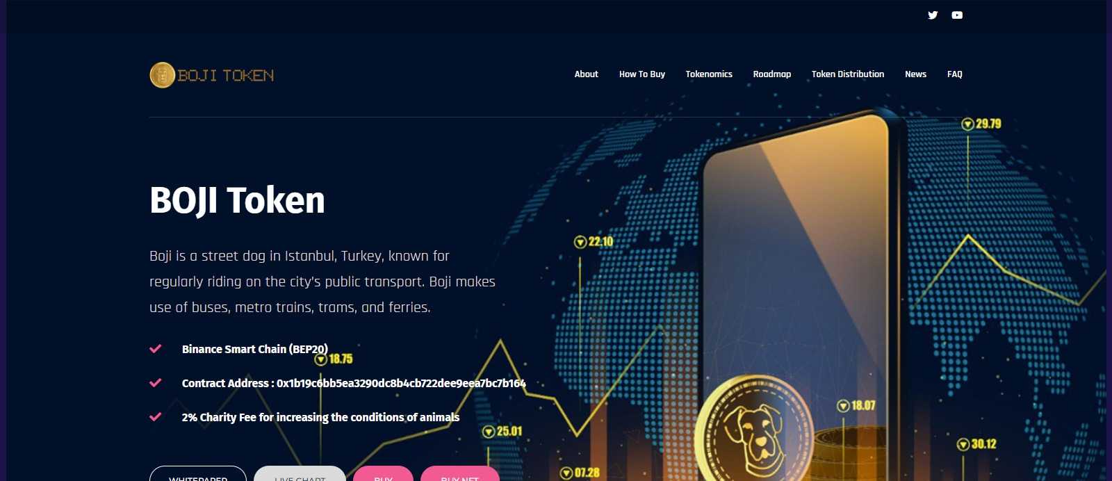 The Boji Token was created on 3 April 2022 with the goal of being a fully decentralized project with a purpose.Token is a community-driven token built on a foundation of transparency and open communication with the community. The Token brings crypto adoption to the main stream with new concepts such as NFTs, DEX, Metaverse gaming. The goal is; to improve the conditions for the animals around the world and change the universe as a better to live for animals.